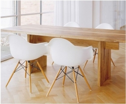 Designová židle DAW čalouněná, . Univerzálnost DAW židle tkví v jejích čistých liniích a neformální kombinaci materiálů. Organicky formovaná skořepina sedadla z plastové hmoty byla později kombinována s různými podstavci a mnohonásobně vyráběna. Luxusní designová židle inspirovaná kolekcí DAW s dřevěným podnožím.